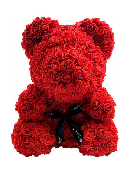 Rose Bear with red artificial roses in a luxury gift box.