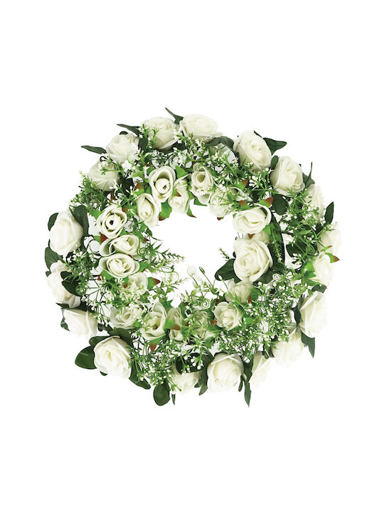 Τεχνητό στεφάνι εκρού τριαντάφυλλα